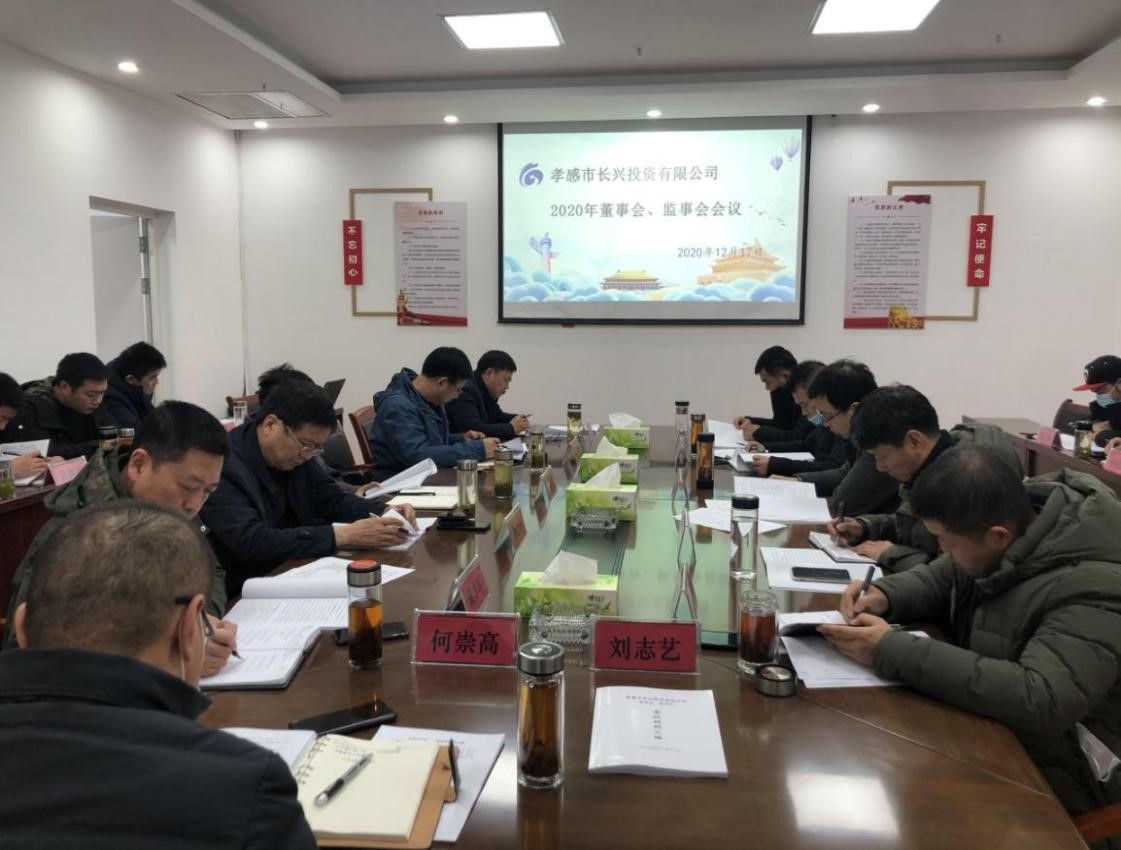 2020年12月17日下午,孝感市長興投資有限公司召開了董事會、監(jiān)事會。公司董事長胡格峰主持會議,公司各董事、監(jiān)事及高管共同參加會議,本次會議應(yīng)到董事13人,實(shí)到董事11人,應(yīng)到監(jiān)事10人,實(shí)到監(jiān)事10人,符合法律程序。